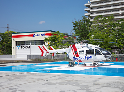 ドクターへリは狭い場所でも離着陸できるような小型機で、当院ではBK117C-2型機(川崎重工製)の機体を中心に使用しています。