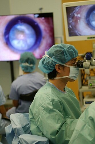 全身合併症を伴う方が多く、術前の全身検査に細心の注意を払っており、コメディカルとともに術中前後の眼および全身合併症予防を心がけています。片眼(時に両眼)1 泊2 日の入院で行っています。全身麻酔を要す場合は2泊3日の入院で対応しております。